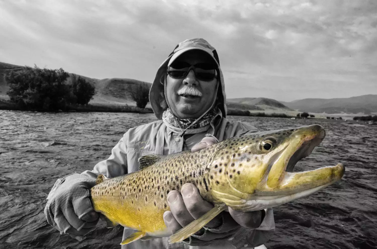 The Yellowstone River has cooler water in fall and is a good place to look for brown trout on streamers.